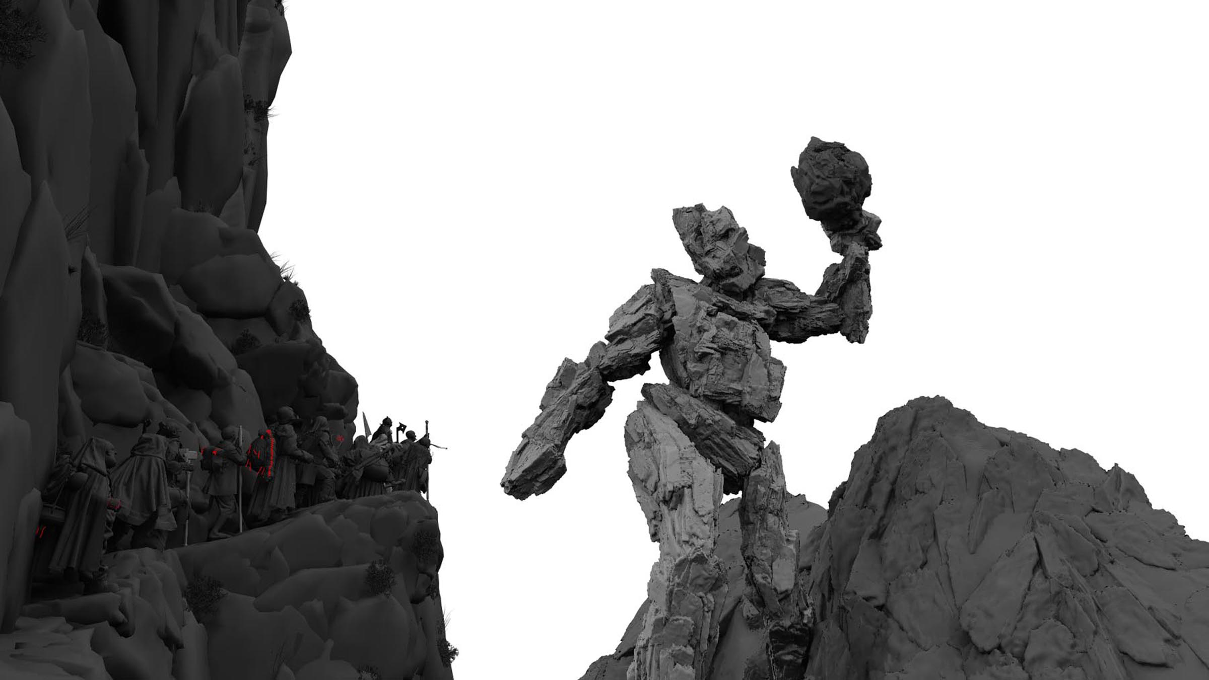 Hobbit: An Unexpected Journey The “before” version of the stone giant sequence, part of which was shot on a very small stage.
